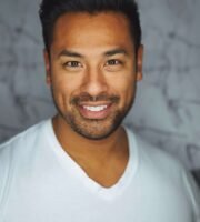 A tall building features a large advertisement promoting rental opportunities. The lower part of the scene includes playground equipment and a parked white van. The sky above is partly cloudy, creating a contrast with the building.